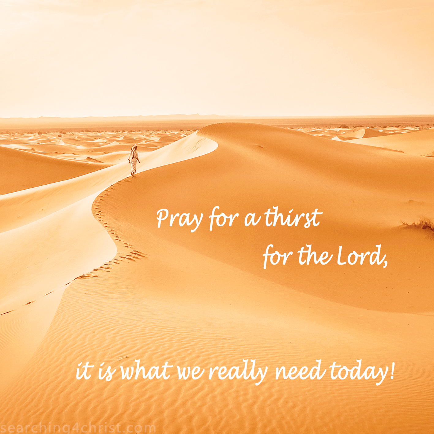 People may still preach that we need to be passionate about God and our faith in His Son Jesus Christ. But, who is there left that is teaching us to hunger and thirst after our Savior? Our entire relationship with the Lord hinges upon how much of Christ we have. We file into and out of our churches these days without ever really stopping to check our desire for Him. We think that being fully convinced is what God is looking for. We imagine that being prepared to strongly testify to our faith will help us. We come to think that having our doctrines clearly defined and firmly held will prove our walk with the Son of God. But if we let the Holy Spirit and the Scriptures speak to us, we will learn that thirst is essential. We must know that we need the Lord in our hearts. We need to burn for Him. We need to yearn for Him, even just a taste! If we could just taste a little more of our Savior, we would want more! The more we taste, the greater our thirst will grow. Let us pray for hearts that are willing to suffer a parching thirst for the Lord that will only ever be satisfied with His presence with us today!