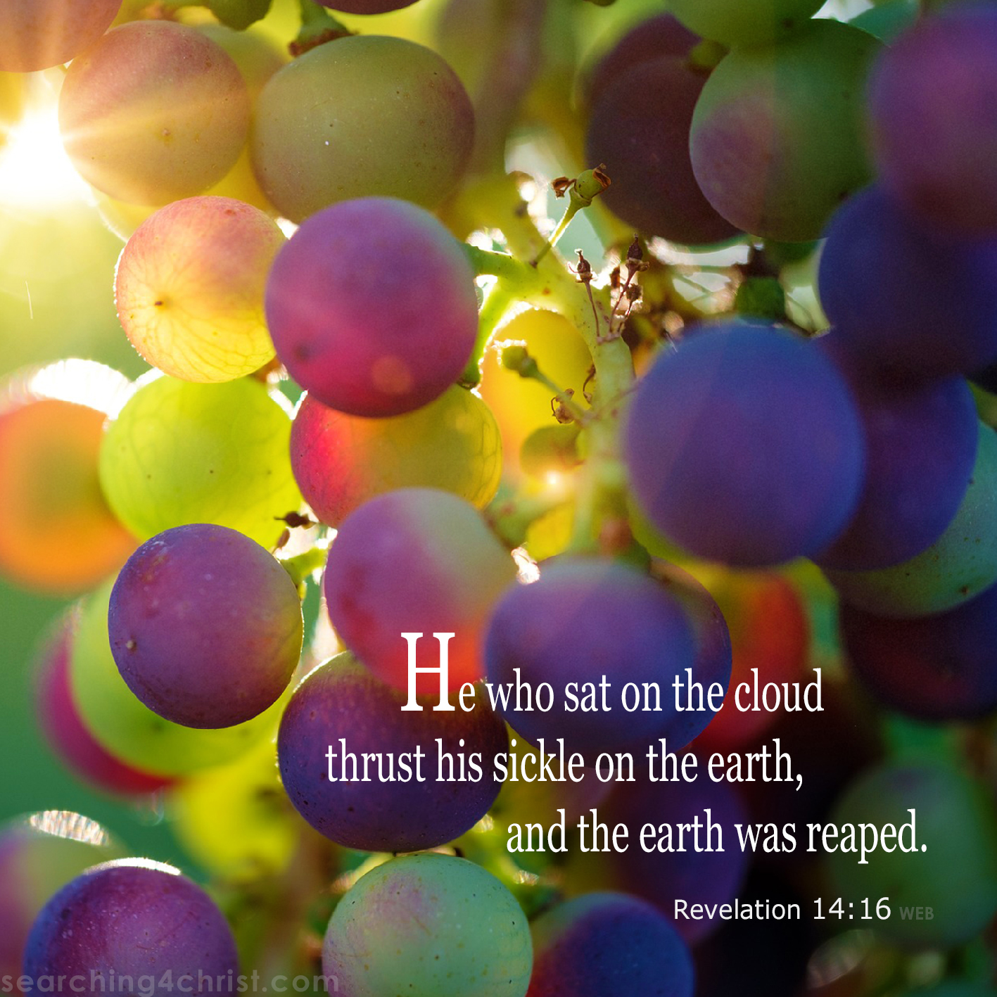 He who sat on the cloud thrust his sickle on the earth, and the earth was reaped. Revelation 14: WEB