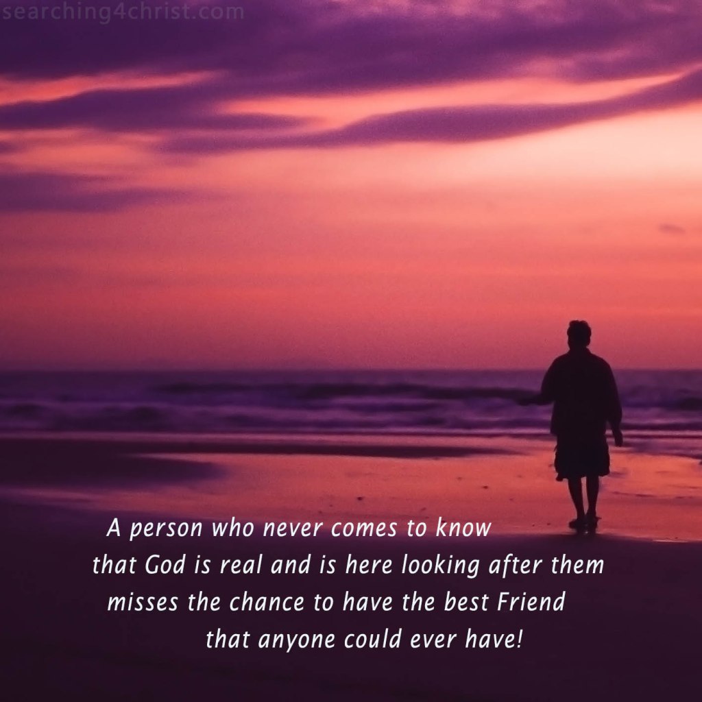 They may think they are being smart. They may think that Christians are foolish people judging by their strange notions and practice. But the person who takes confidence in this world and refuses to give God a chance to break through all the barriers and show Himself to them is missing out on more than words can say. They maybe fear having their hopes shattered one day and that God never proves to be real. But those who have weighed the costs and have let their hearts open to God to come in and make His home with them will know. They will testify to His nearness, His infinite goodness, and His powerful presence. The Friend they find in a loving Savior that was willing to die out of love for them is priceless. That He would go so far as the cross for stubborn and arrogant people like us, is amazing. Yet, He did. And by doing so, Christ became the best Friend we could ever have. He has triumphed over the grave, over all that is evil, and made a way for an endless future with Him. With a powerful, caring Friend like that by our side, we can stand to face any storm that this world throws at us. With the Son of God taking our burdens on His shoulders, we can endure any trial and every setback. Take the chance today to be filled with the Spirit from above and we will have the most pleasing relationship available to us. It will be far above understanding and imagination. We will place ourselves within reach of a relationship with the ever-present and Almighty God!.