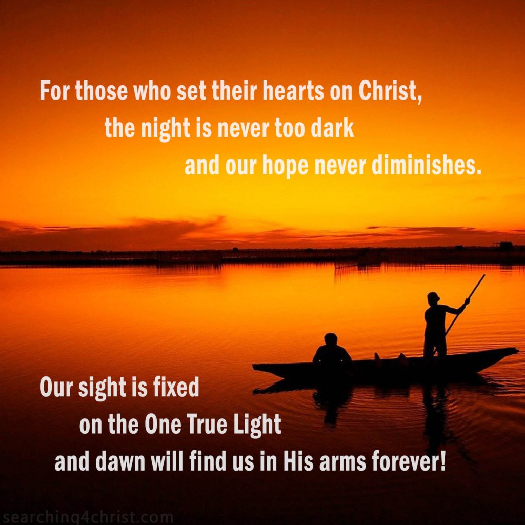 Walking through our current times can be a scary thing. These are dark and dangerous days when we do not know where evil is laying its next ambush for us. But the children who look to the Savior Jesus Christ have a hand that will guide them and a mighty shoulder to lean on. Our trusted Friend fills our eyes and as we fill our vision with Him, our steps and our destiny are sure. Let the night fall, and let the hours pass. The eyes of our souls are mounting with excitement for the breathtaking dawn. It will be the Day of the Lord!