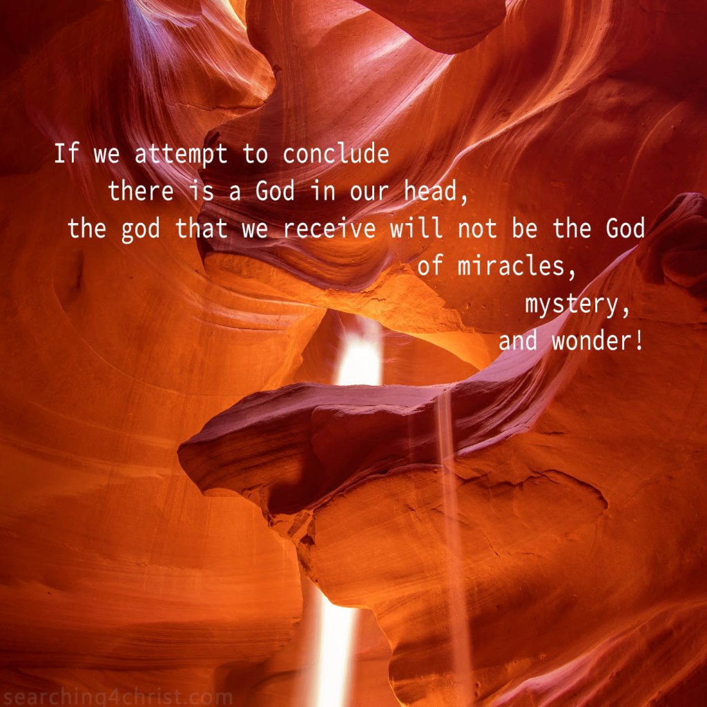 The need to reason God into existence is only proof that we have bowed breathlessly before the burning bush. The humble souls who have met the God of wonders will gladly testify to the mysterious nature of our Maker. The God of all the universe will always leave any man or woman undone when they realize that He is near and that He is moving. He will never be a deduction that we make nor a psychological conclusion we come to. He will forever remain higher than our highest notions. We may study Him for an eternity and when we do, there will be more discoveries to blow us away each day! The beings that are said to stand in His presence know more than the rest and fall down to praise Him for the wonder that He Is! We will get much further in our knowledge of God by throwing up our hands and declaring,
