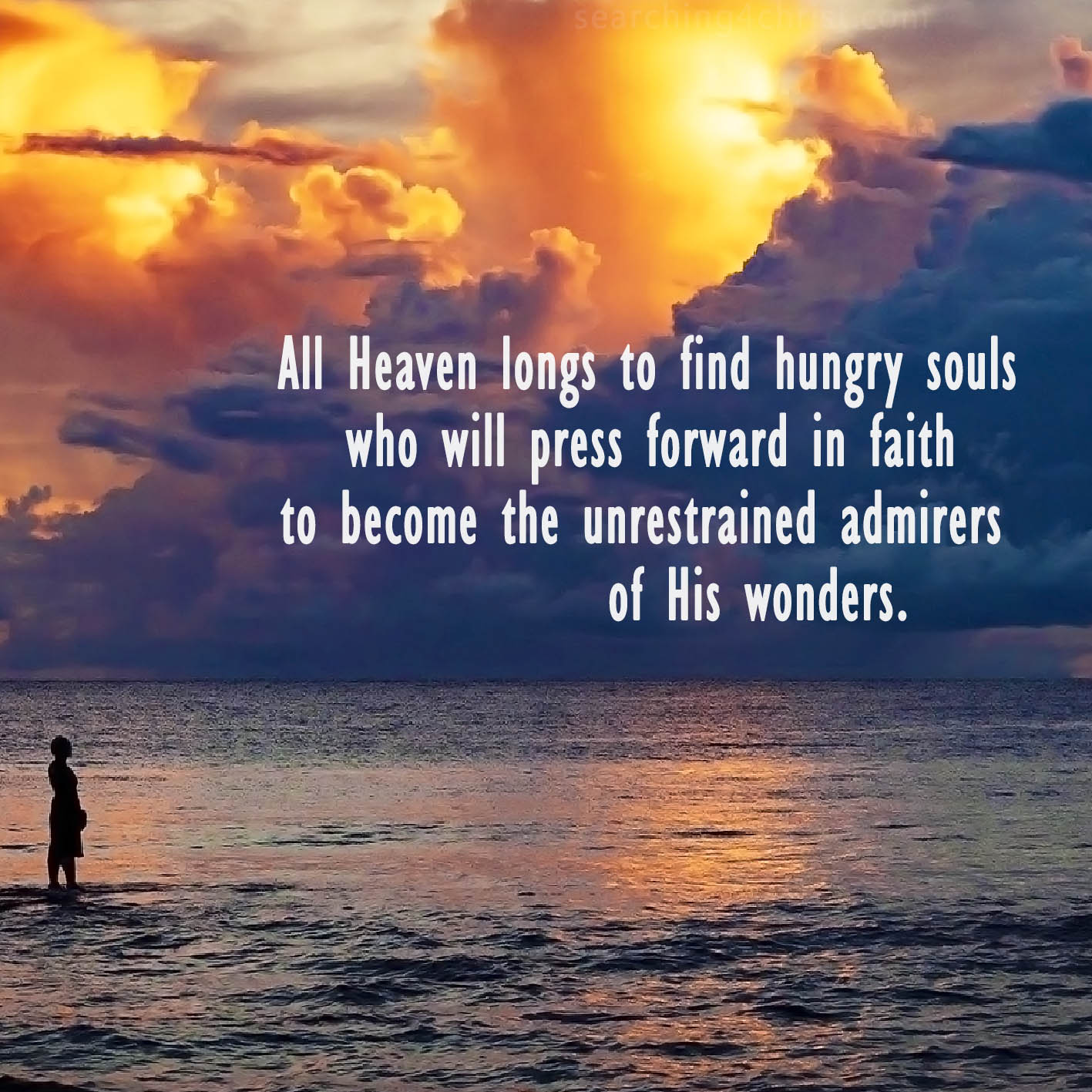 God´s admirers are Christians who have grown from their initial notions of gratefulness, forgiveness, and peace. The have taken what they have learned and used it to approach the Divine and gaze upon Him in wonder. They seek to experience God for themselves. They want to behold the One we are not worthy to see. They choose to fall breathlessly before the Divine. Each new revelation on their upward journey will overwhelm them and drive their souls to seek more of Him. They will hunger and thirst. Their faith rises above being thankful for the blessings God has given us or the troubles that He has saved them from. Their blessings now are thrills they receive of knowing Him further and seeing His glory more clearly! Let´s not rest until we can be raptured admirers of the God of Wonder!