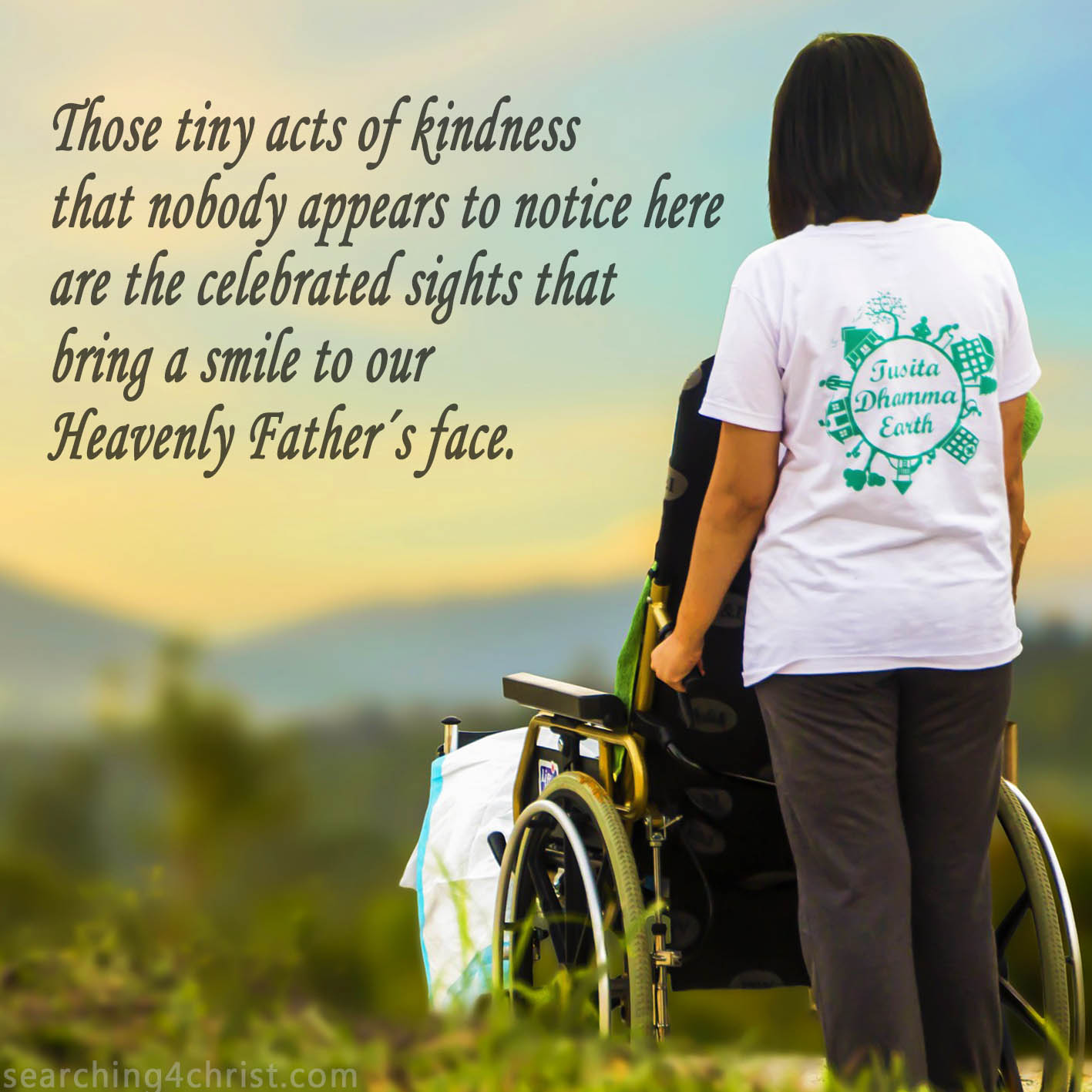 Some people struggle to make themselves do things for other people. Others, it seems, come by it naturally. Whatever the case is for us, if we believe in Jesus Christ, His great heart should stir in ours. We could not call ourselves Christians if we do not want to become like Him. If we are unable or unwilling to care for others, then we should not bother further with religion or continue to give it a bad name. God is love. His Son came to us preaching that love. He let men with stubborn minds and hard hearts put Him to death out of the greatest expression of love we have ever seen. As Christ stooped down to touch and heal the sick, we should stop in our tracks too. We should be moved by the compassion of our Lord and seek to have His Spirit in us. The humble souls who have learned this secret and were open to care for others are the jewels that sparkle the crown of God. These precious souls do kind and unselfish things all through their day as the Spirit moves their hearts. The world may not see or recognize them for their sacrifices or offerings. But their Lord sees all and knows their hearts. We should pray to become one of God´s priceless hearts that go out to others who are in need! It will show Him that we are truly His!