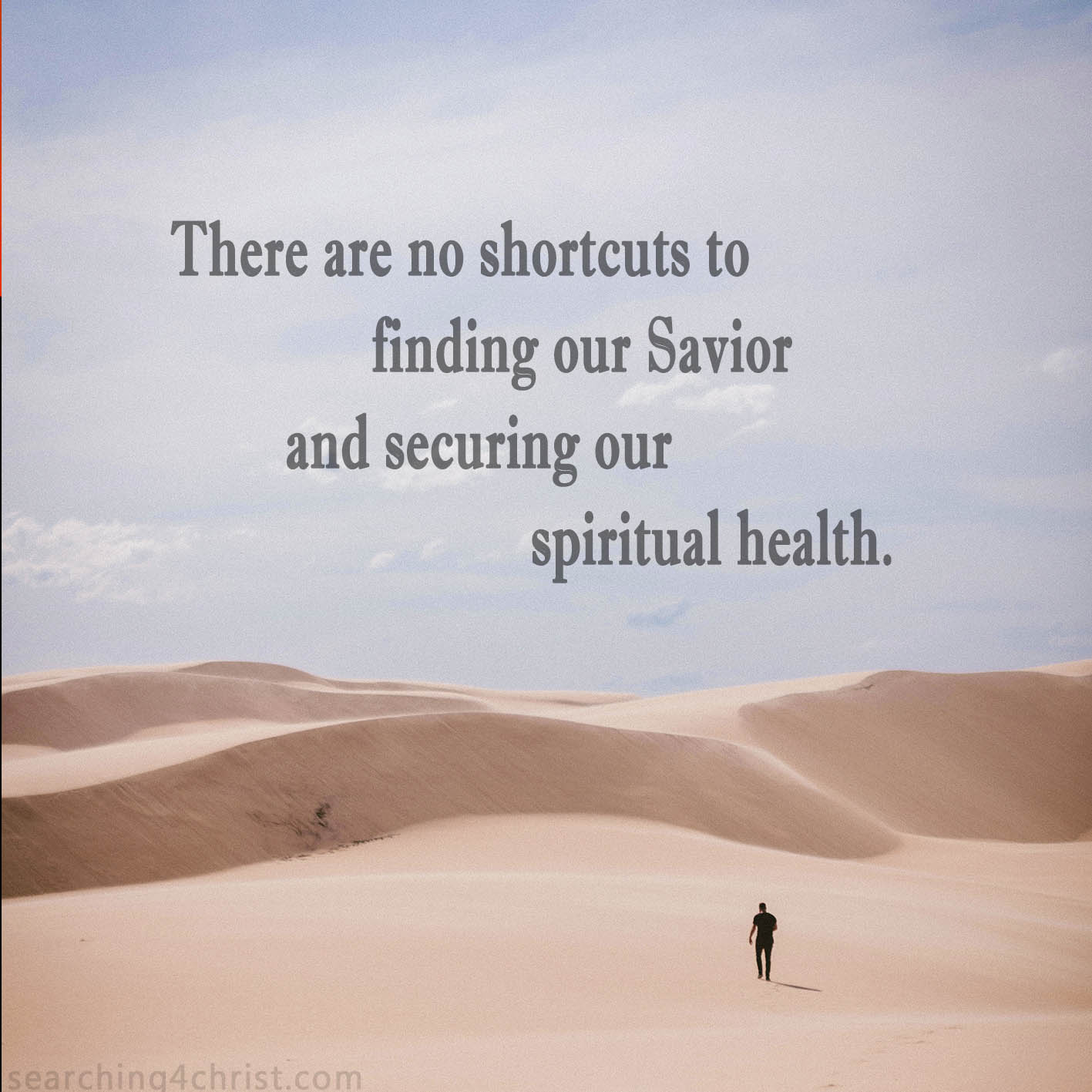 Gone are the days when men and women were taught to work out their relationship with God through tears and personal sacrifice. We used to be taught that if we wanted something bad enough, we should get off our butts and work hard to see that our goal was gained. Nowadays though, people seem to think that everything they want is owed to them and they try to bring this notion into our spiritual health. The problem, however, has always been with us and our wayward thinking. Nobody will ever get into Heaven just because they demanded it. No one will get there because of some convenient text or fancy doctrinal belief. Each and every one of us will need to see to it personally that we come to know the One we say we want to live with for eternity. Our hearts, our lives, our time, and our desires will all need to be painfully wrenched out of our greedy little hands and sacrificed on the cross of Jesus. We will need to hunger and thirst for our Savior until He is the One who moves in to fill the emptiness inside. Then, when we have found what our souls truly ache for, we will need to learn to walk inseparably with our God each step of every day! There will be no shortcut into Heaven, but the Way can still be found by those who are willing to set themselves to finding Him!