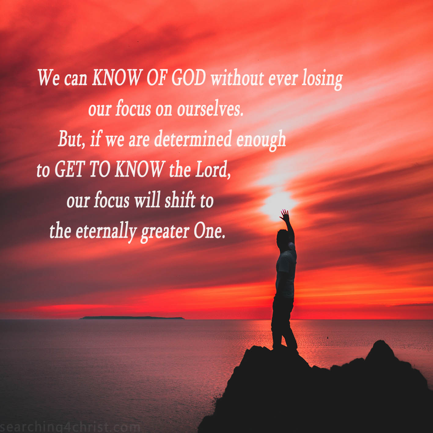 There is a giant gap between knowing of God and getting to know Him. People throw around their views of God as if they were the experts. Because they have their chosen concepts that they call their belief, they charge right ahead and speak their opinions loudly. It is completely different, however, for the priceless few who have gone the distance to get to know Him. Those who left their comfort zone and traveled the lonely road of refusing to focus on themselves or our clamorous world will discover God in a Way that others could never imagine. As our focus shifts from ourselves as the highest priority and value, we begin to walk on sacred ground with the Divine. Only those prepared to let go of all that we like to think belongs to us here will stand a chance of gaining a privileged relationship with the Lord. But, if it is truly God whom we would know personally, He will be forever pleased to walk us through the steps of coming to know Him. Our religions are just speculations, opinions, interpretations, and impersonal doctrines until the Almighty moves in us and allows us into His presence in personal awareness. Those who press on in their desire to get to know God deliberately reject their precious “selves” and our world. But what they gain as they come to know the Lord is infinitely sweeter and of incomparably greater value!