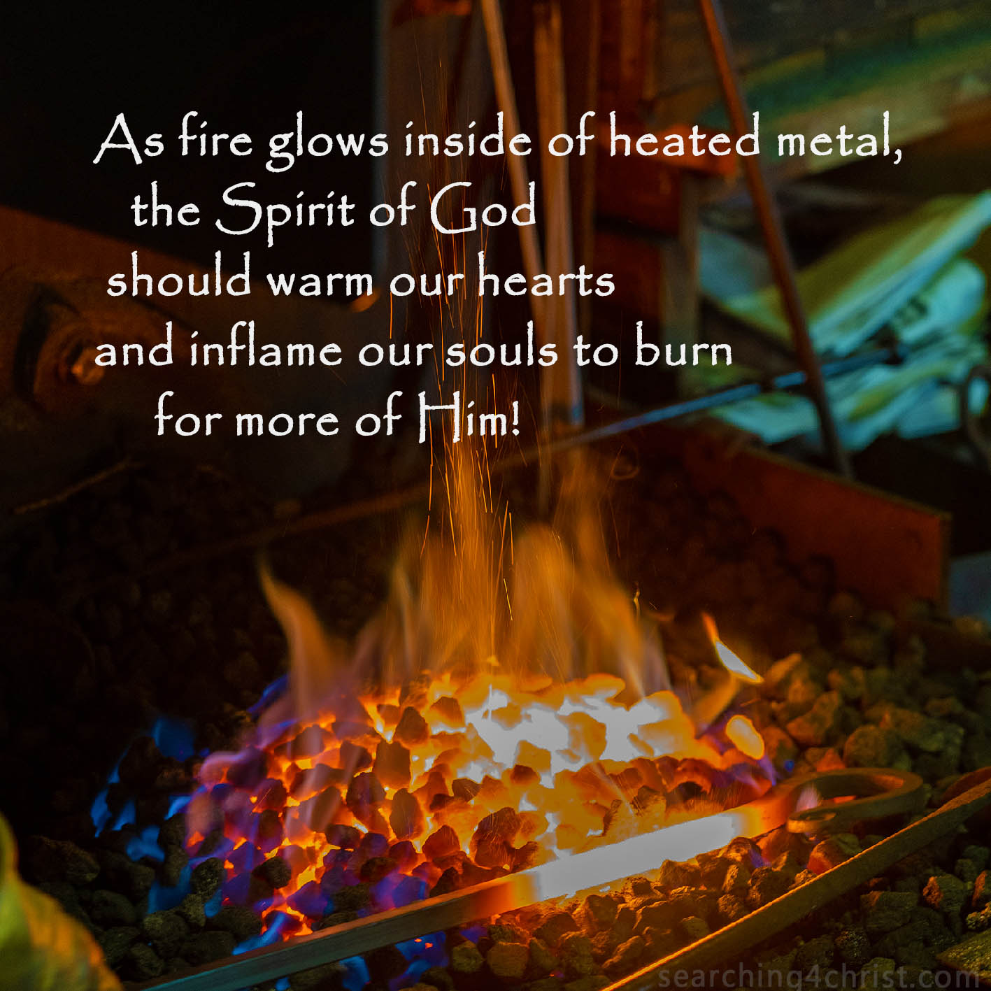 If we have experienced little or much of the wonder that we call God, we should have been touched enough to spark more interest within. Our god would be a tiny thing indeed if after meeting him we were not stricken with the bliss and awe of our encounter. But the Almighty and Unseen God of All Creation is infinitely greater than any imaginings of Him. One single encounter, no matter how small, should leave the wondering worshipper undone and bewildered with what we saw, heard, or felt. Far deeper than interpretations or fine arguments, actually engaging with the Divine should shake the foundations of our beings. To stand, or rather fall in the presence of One so great, should thrill these hearts and send us on the mission of our lives. Forever will we seek to experience more of His infinite wisdom, strength, and love. We will want to be ever closer to the One that we cannot with words explain. We will want to grow so close that His Spirit enters our souls and increasingly fill our lives with His presence and movement. Our hearts will be on fire for more of Him. We will burn. That smoldering inside will be God in us, forging our lives and fanning up the flames of desire for more, ever more of Him!