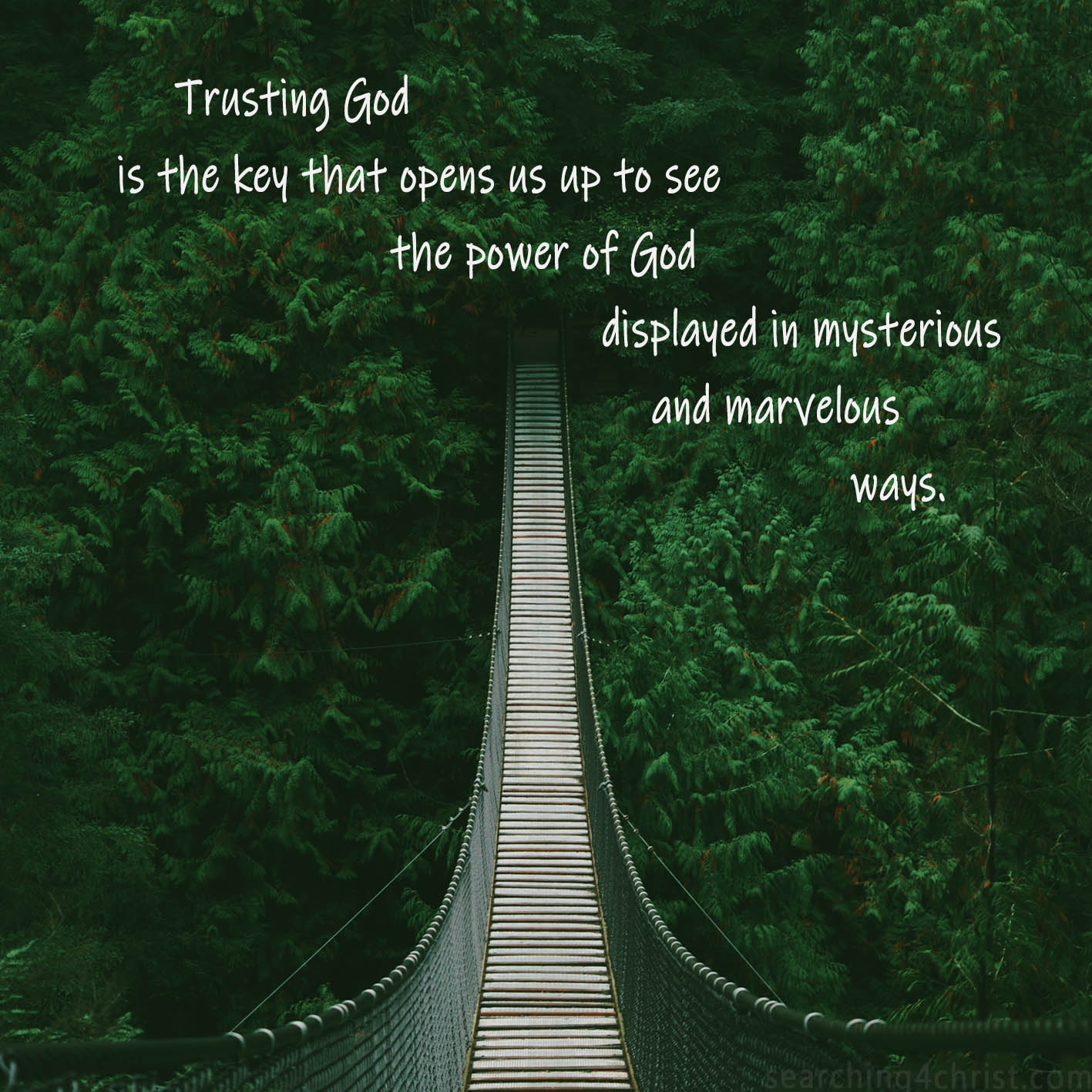 Some people think that putting their trust in God is too much to ask. For them, it is more of a struggle than they are willing to give. Maybe they have been deceived to think that God will let them down. Or maybe someone is whispering to them in their hearts that if they did trust God, then they would not feel comfortable taking the back seat and letting God control the outcome. Whatever the case, doubt closes doors while hope and a little faith open up our hearts for so much more. When we go out on a limb and place our trust in the good heart of God, something magical happens. The first change is the beautiful change that begins to stir within our hearts. Then, we progressively become more aware of the powerful presence of the Lord. As we grow steadily more observant we will become more and more surprised each day at God´s care and provision. We can expect to be blown away increasingly more often by miraculous displays of God´s powerful arm at work. The closer we grow in our relationship with Christ, the greater our trust will grow and the more wonderful miracles we will see.