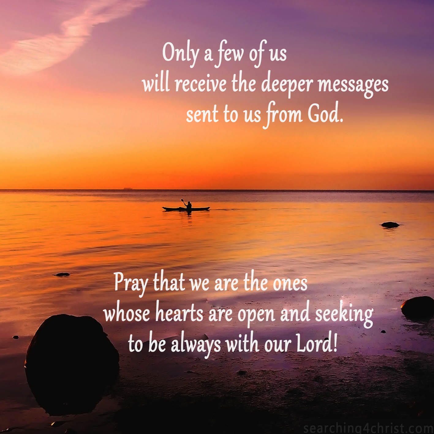 There is a beautiful example of spiritual truth that is found in the life of Christ. When Jesus began His ministry, He traveled around teaching. People flocked to hear Him and they were amazed at His words. Sometimes huge crowds gathered. Hearts were warmed to hear His good news about God. However, only a few chosen people who were around Him received the deeper message. His Disciples often asked Him about His message and wanted to know the weight it had in spiritual realms. He enlightened them further. Why did they get a fuller revelation that was filled with power and the rest of the congregation did not? Well, they were different than the rest. They had a special quality that we could seek to have as well. Their hearts were a little more open towards Jesus. They had been called, but so have we. The difference is, that something in their hearts drove them to exchange their earthly lives for one with Him. They sacrificed the aspirations of this life, to walk and talk with Christ and to be with Him wherever He was. If we want to be filled with the Holy Spirit and receive our instruction directly from our Lord, then let us seek nothing short of His presence and settle for nothing less than to walk every moment with our God.