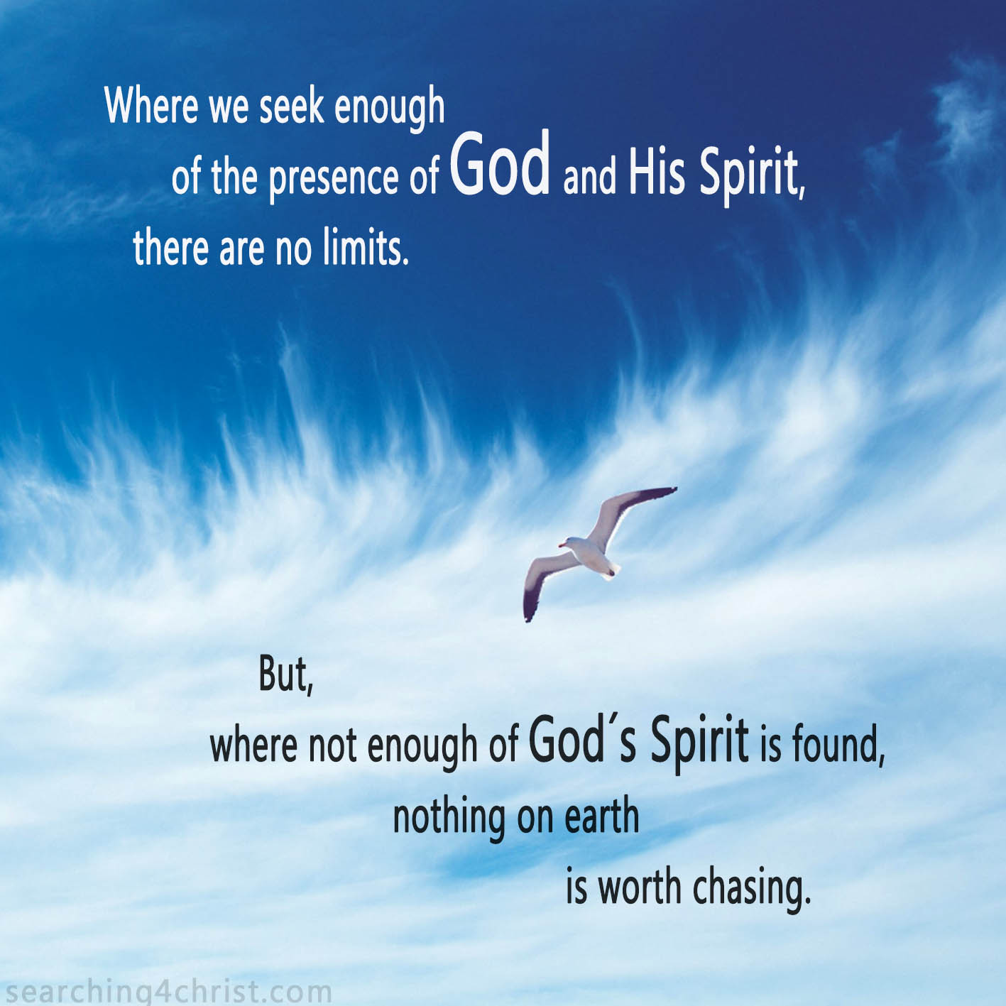 We run around each day chasing our dreams and aspirations. We are all trying to get somewhere or something. We fight to get what it is that our hearts have set themselves on. We may get some of it, and others may seem to have it all. But, none of it will truly help us if it has not brought us closer to Christ, no matter how much we manage to gain. We have been sold the wrong philosophy in that we think we deserve comforts and blessings in this life and completely forget that our test is to see if we ever want to know God or not. The true Life that the Bible teaches begins when we meet the Lord. For the individuals who have met Him, every step we take with God in our new relationship is full of and powered by His Spirit. Each step that we take with Him leads us further along an unending journey from where we once were. Before us, there is an eternity of endless discoveries of God and His wonders. When we seek to have God´s Spirit with us, He comes with all the endless power and possibilities of God. When we do not need or seek to be where the Lord is moving, then all our efforts are only worldly and whatever we gain will get us nowhere in the end. Let us seek the Lord today and pray that we desire to be filled with nothing less than the Spirit of God!