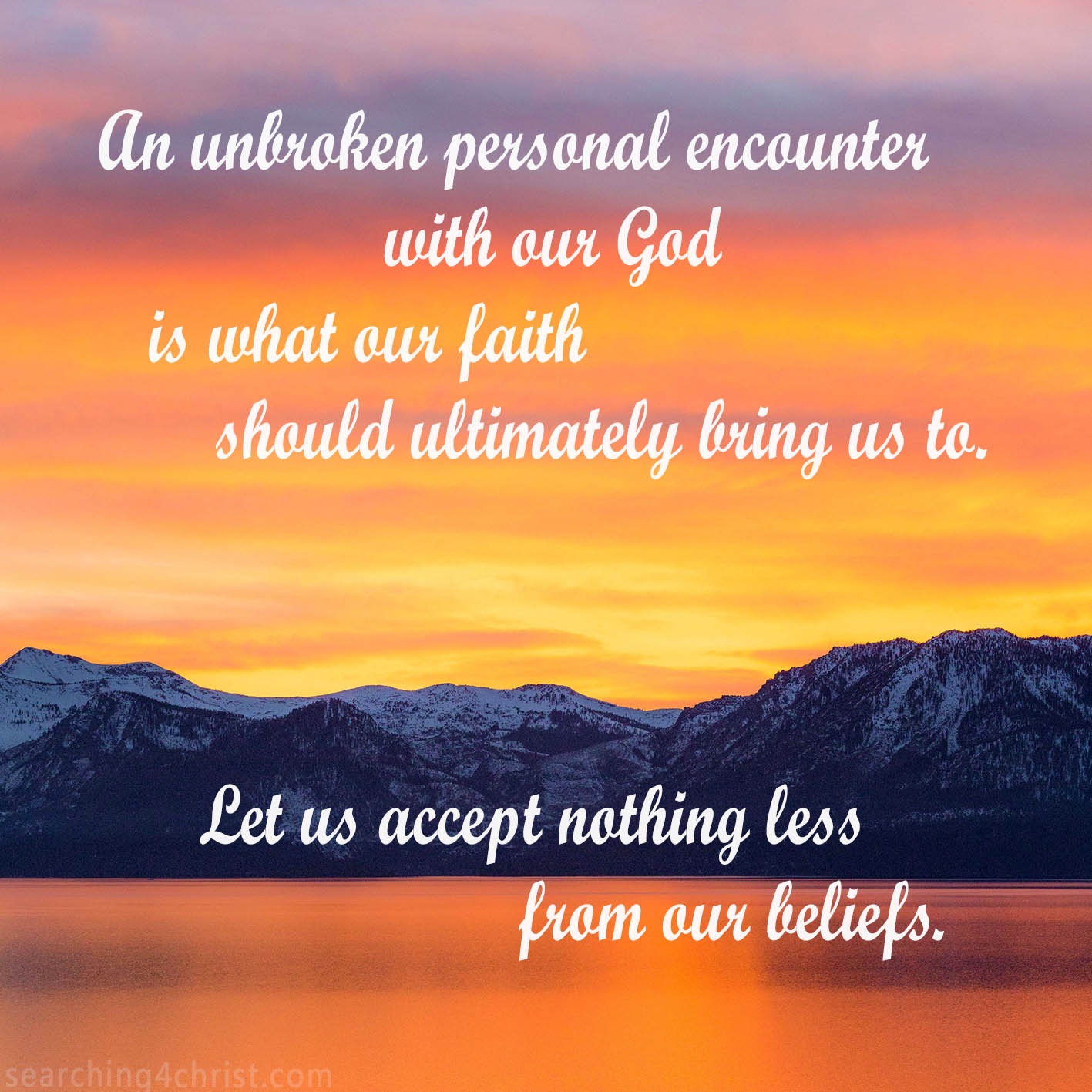 We can play at religion all our lives and never expect to actually encounter God in living experience. It is completely possible and sadly happens more often than it should. What we cannot accept is that it will ever happen to us! Having our devotions and then running out the door to our busy schedules and busy lives not to think of the Lord the rest of the day will not do. No, we must demand that wherever we go, we will need to know that the Spirit of God is too. Some part of our hearts must be tuned to God, our ears open to hear His voice. His presence must be felt. We need to intensify our prayers. We need to spend more time or increase efforts until awareness of the Divine sweeps over us. We all should aspire to go from where we once were and come closer to the Lord with such intensity that Heaven becomes our natural Home. Never let our sights fall below an intense bond and increasing awareness of God present with us. Let us set our sights on having a more intense relationship with our Lord each day. Pray that we will keep insisting on walking closer to our Savior all the time.