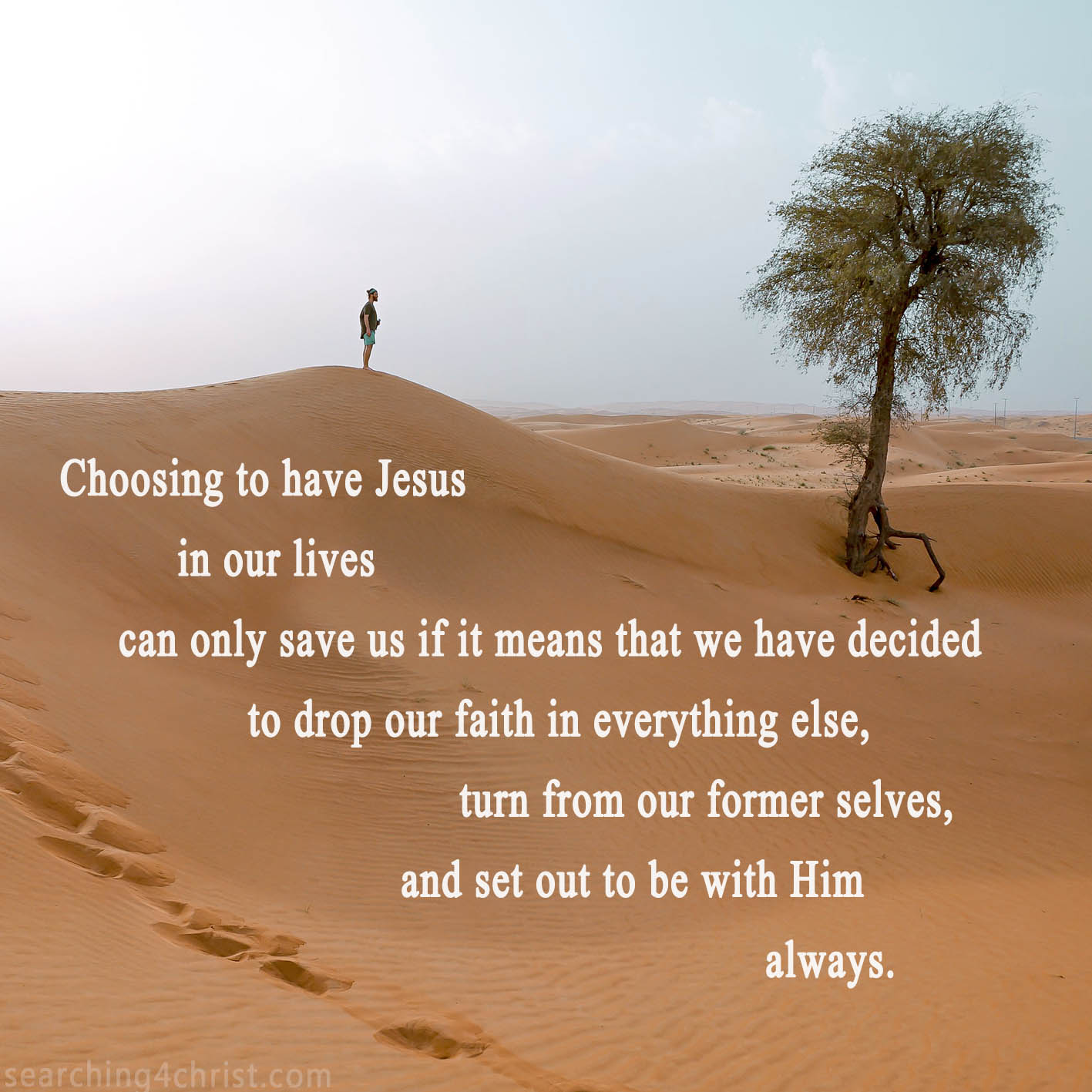 The deciding point in every person´s life is when they choose whether or not to carry on trusting in our human logic or strength and place our whole lives into God´s hands. This is important because our way takes us in one direction and choosing Christ means to turn completely in the other direction and plod along against the flow of those around us. However, there is a great deceptive trick that lies within this decision. The father of all lies has had great success in turning our decision into a patch we use to cover up the fact that we never truly turned from trusting in ourselves. We use the name of Christ and quite romantically think that we have done well with our right to choose. We continue along our way never realizing that we have left none of our love for this world. When we choose to put our lives in the Lord, let us make really sure that we deliberately turn away from worshipping ourselves, lifting ourselves up, or patting ourselves on the back for our so-called choices. Let us see to it that we turn to God despite any tricks of our hearts or words and build our relationship with our Savior.