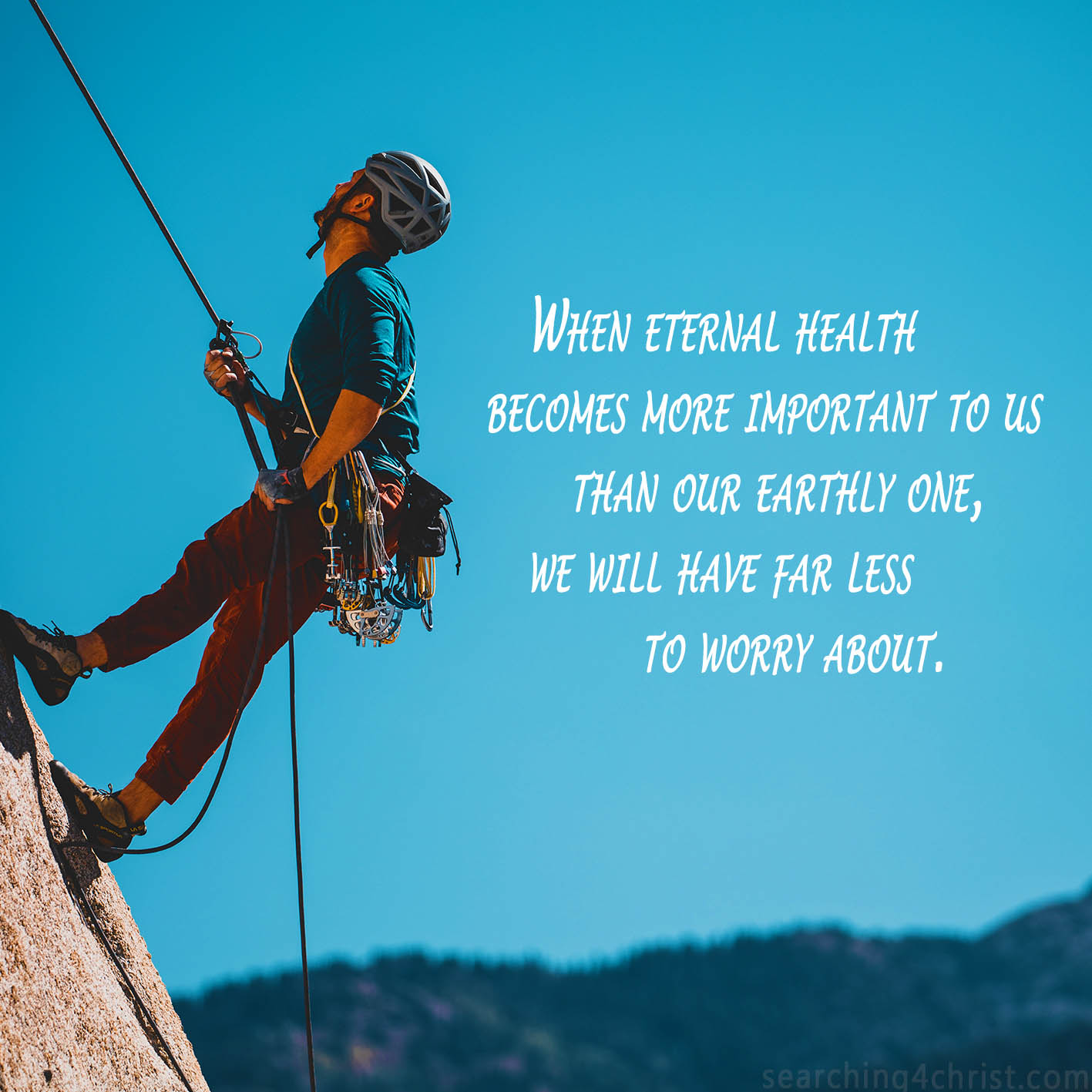 We know what foods we can eat that will be better for our bodies and let us live healthier lives. We know that exercise improves the state of our health too. Not everyone lives as healthy lives as we know we should, but at least we are aware of when we are not caring for our health. What we don´t always think about is our health that could live on once we are through with our earthly bodies. The Christian message and mission give us hope in something far more lasting than these tired old bodies we possess now. Christ Himself taught with authority and His encouragement was never limited to what we have here and now. He wanted to spark in us an interest in a different kind of life where God was with us and we were with Him. Entering a relationship with Him is what health is in God´s book. Feeding on what we can receive from the Lord, and thirsting for more of the Lord are the things that bring us good eternal health. When we become more interested in that kind of health, we will spend our days working on our relationship with the Divine. When God´s Spirit fills us, we will become healthy for all eternity to come.