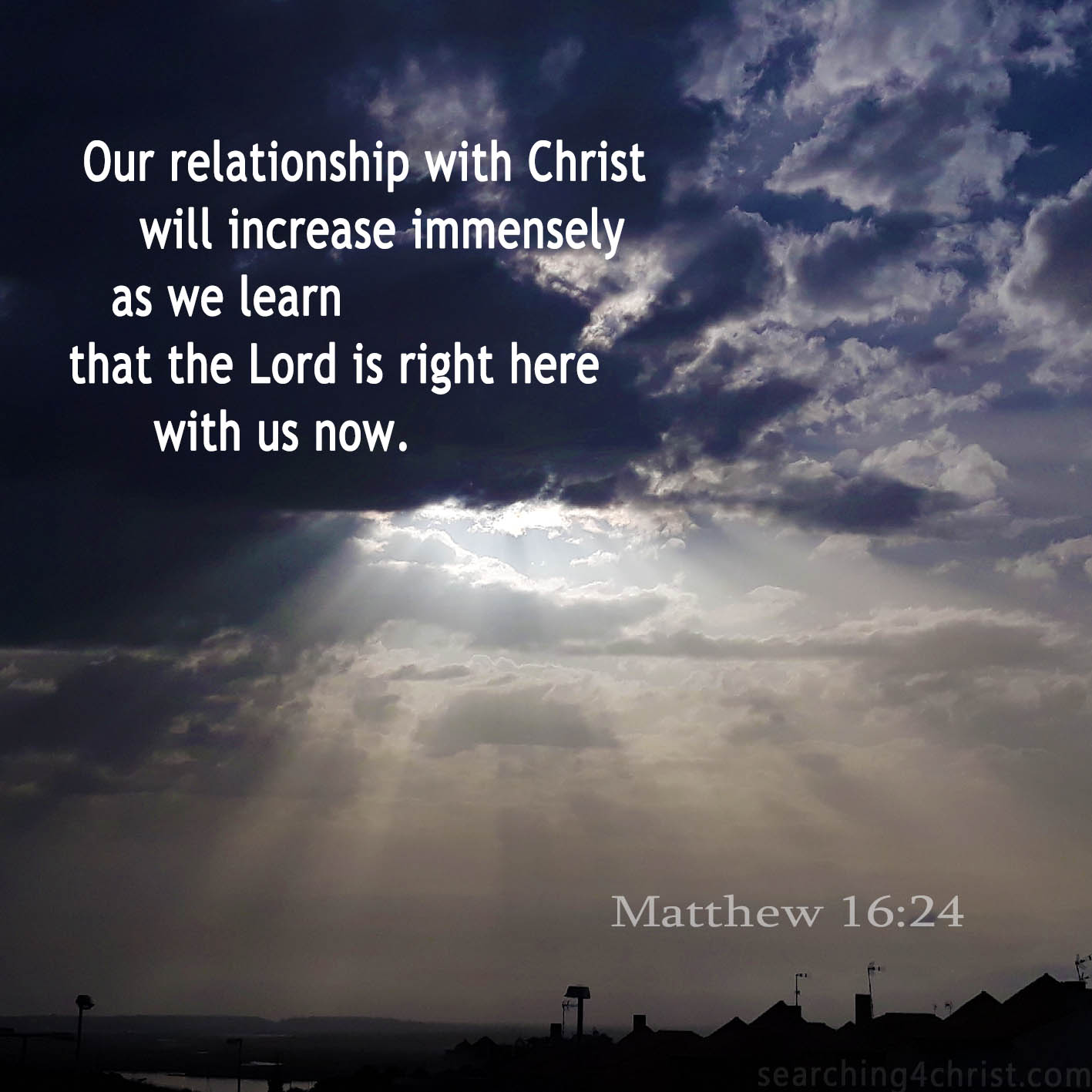 Those who rise to greater heights in their walk with the Lord are the ones who learn to actively bring Him into their day. This humble practice may not sound like much and even believers who have been professed Christians for years may choose not to give it much thought. Yet it is a profound truth that divides forever those who merely say they are God´s people and those who truly know Him and happily walk with Him each day. With a simple change of outlook, the God that some hold to in doctrine and text only comes alive and is free to move in our here and now. He can thrill our hearts, bewilder and surprise us beyond belief. When we learn to stop floating out our prayers into the limitless reaches of space, and finally direct them to the most intimate and trusted Friend, then the magic begins. Where it ends no time nor words can tell! Let us pray that our beliefs will gain us something now! Let us pray that wherever we stand with Christ, He is free to come, welcomed in, and expected to thrill us today!