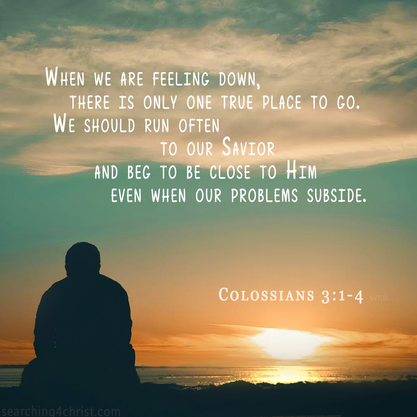 1. If then you were raised together with Christ, seek the things that are above, where Christ is, seated on the right hand of God. 2. Set your mind on the things that are above, not on the things that are on the earth. 3. For you died, and your life is hidden with Christ in God. 4. When Christ, our life, is revealed, then you will also be revealed with him in glory. Colossians 3:1-4