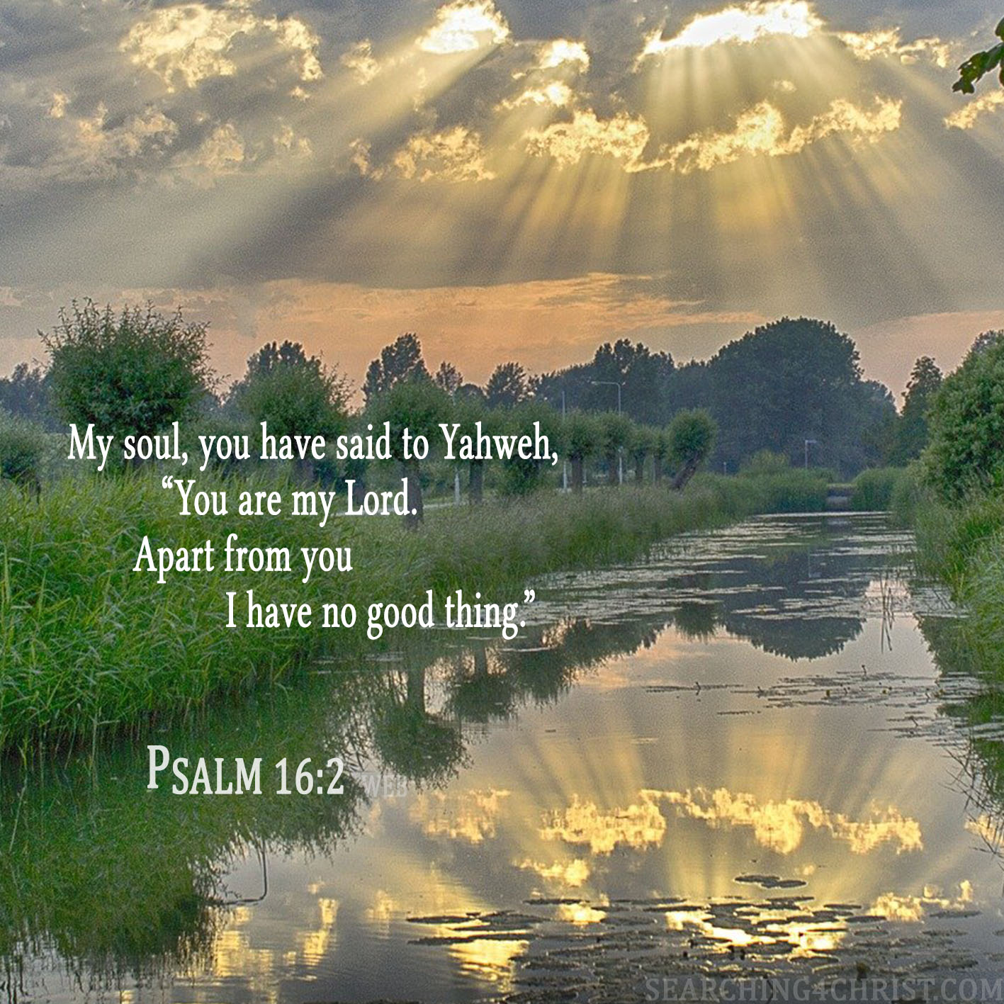 My soul, you have said to Yahweh, “You are my Lord. Apart from you I have no good thing.” Psalm 16:2
