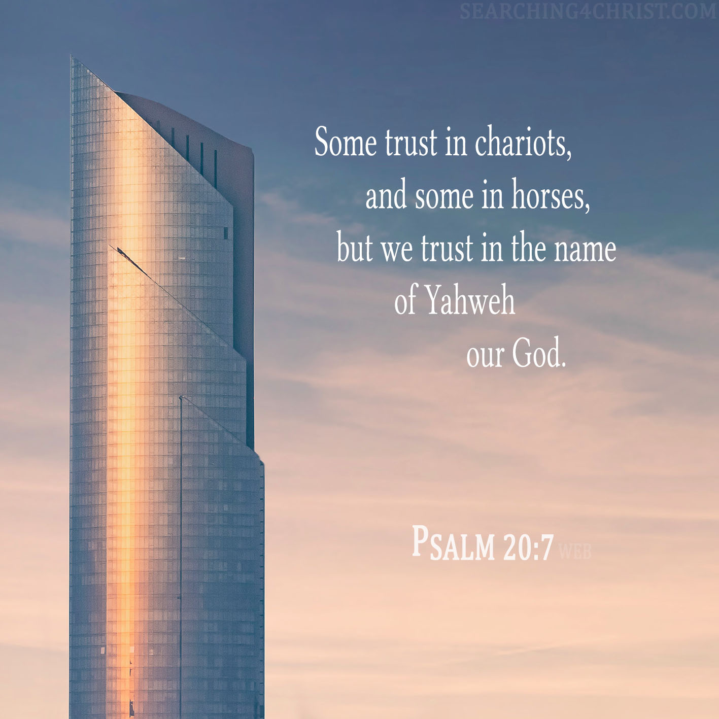 Some trust in chariots, and some in horses, but we trust in the name of Yahweh our God. Psalm 20:7