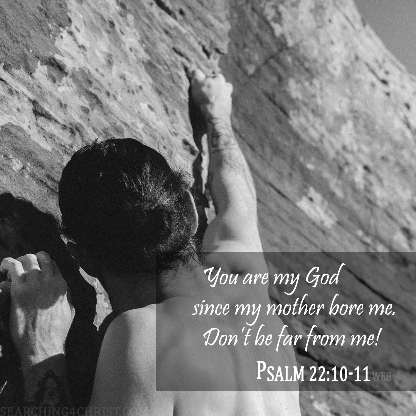 10. I was thrown on you from my mother’s womb. You are my God since my mother bore me. 11. Don’t be far from me, for trouble is near. For there is no one to help. Psalm 22:10-11