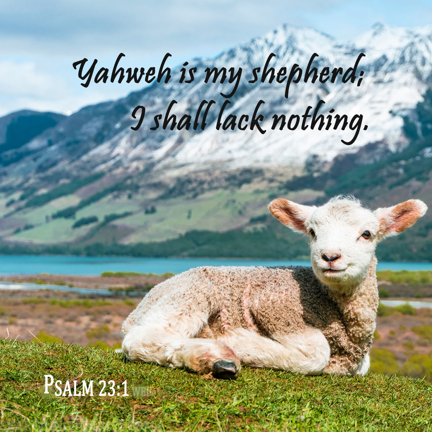Yahweh is my shepherd; I shall lack nothing. Psalm 23:1 (WEB)