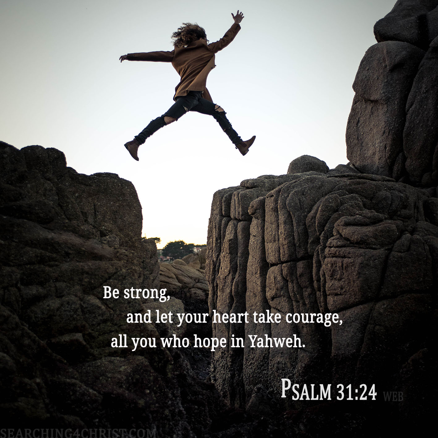 Be strong, and let your heart take courage, all you who hope in Yahweh. Psalm 31:24 (WEB)