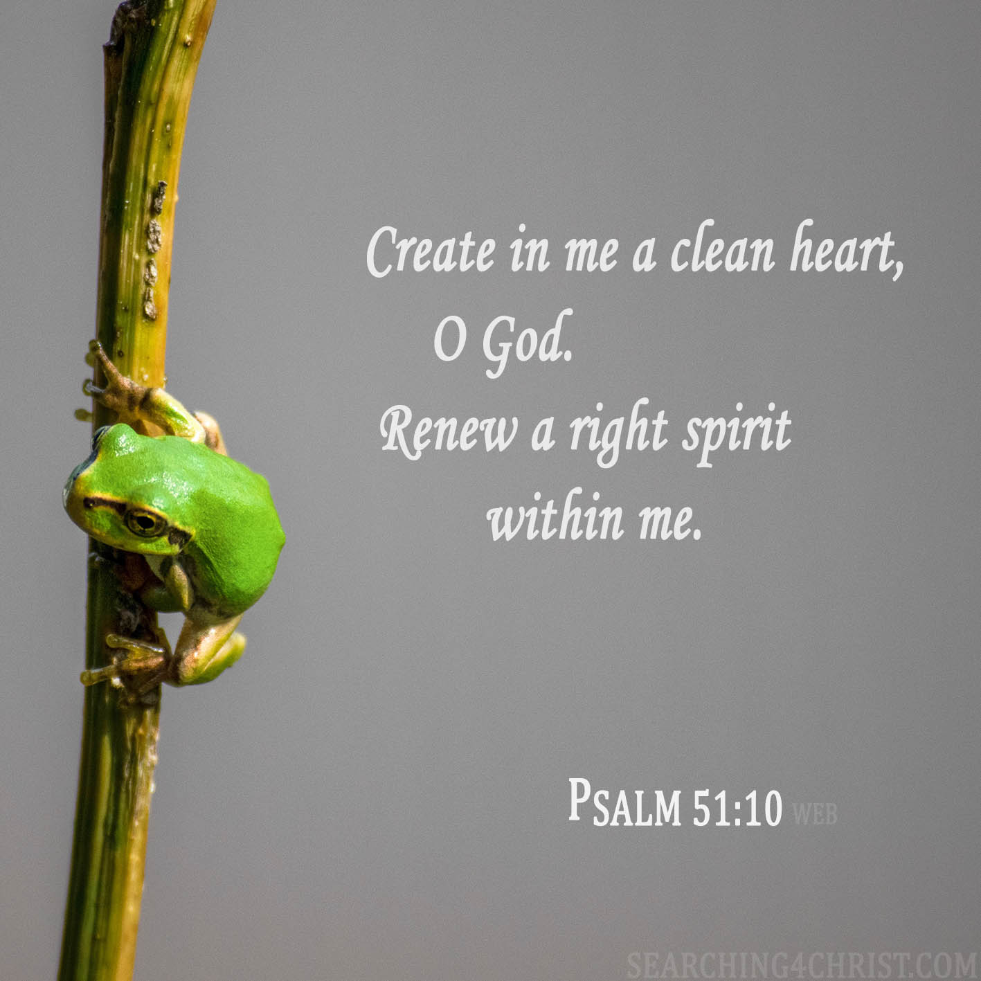 Create in me a clean heart, O God. Renew a right spirit within me. Psalm 51:10 (WEB)