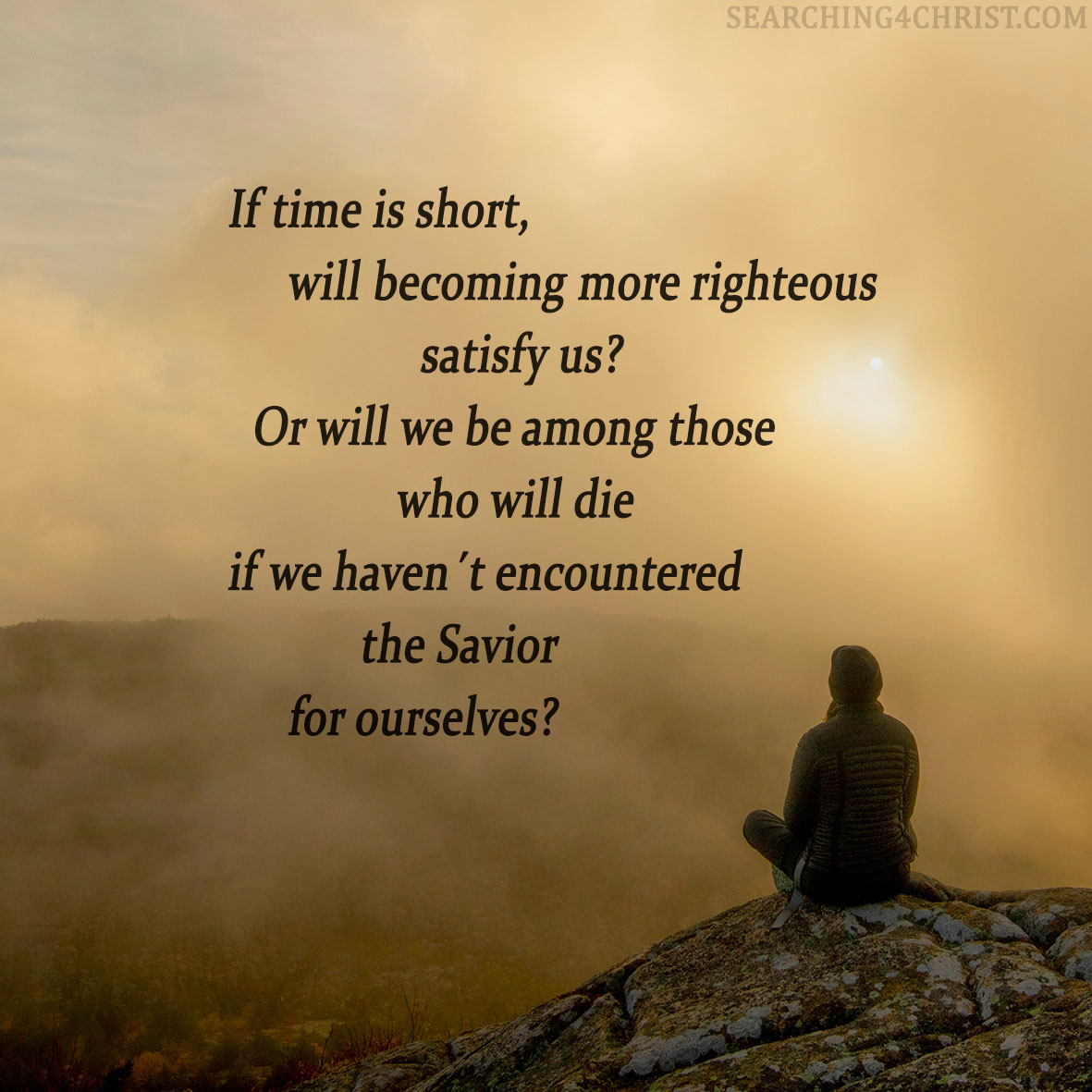Dear Lord, we pray that You will still find some who turn to You when we hear our time is short. If we would spend eternity with You, help us to get to know You intimately now. We cannot afford to waste time trying to be better when it is Your righteousness that we need. So, draw us tightly into Your embrace, and help us, Lord! We pray in Your name. Amen
