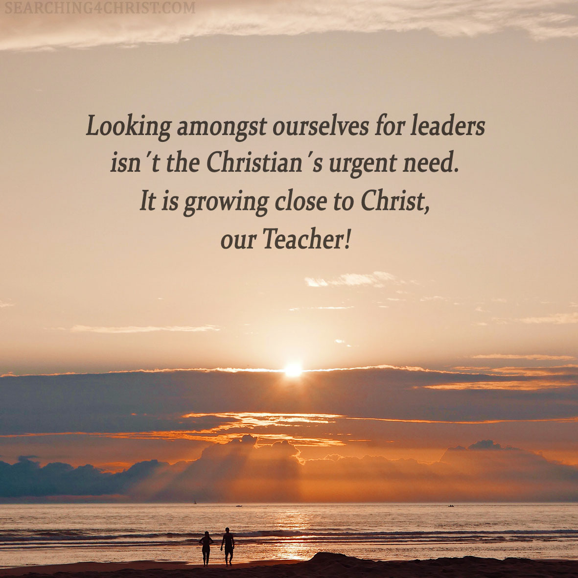 There is a subtle yet devious twist in our thinking lately. It may sound harmless enough, but it could cost us more than our lives. This happens when we Christians look anywhere else than to Christ for our answers. It goes something like this: we sense a low spiritual tone in our lives, so we look for a better preacher. Or we find some new Christian influence or meetings to attend. It is true that we need each other, and getting together will always be good. But that painful hole in our soul will only ever be filled with the Spirit of the Lord.