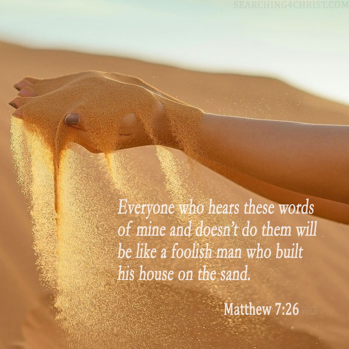 Everyone who hears these words of mine and doesn’t do them will be like a foolish man who built his house on the sand. Matthew 7:26