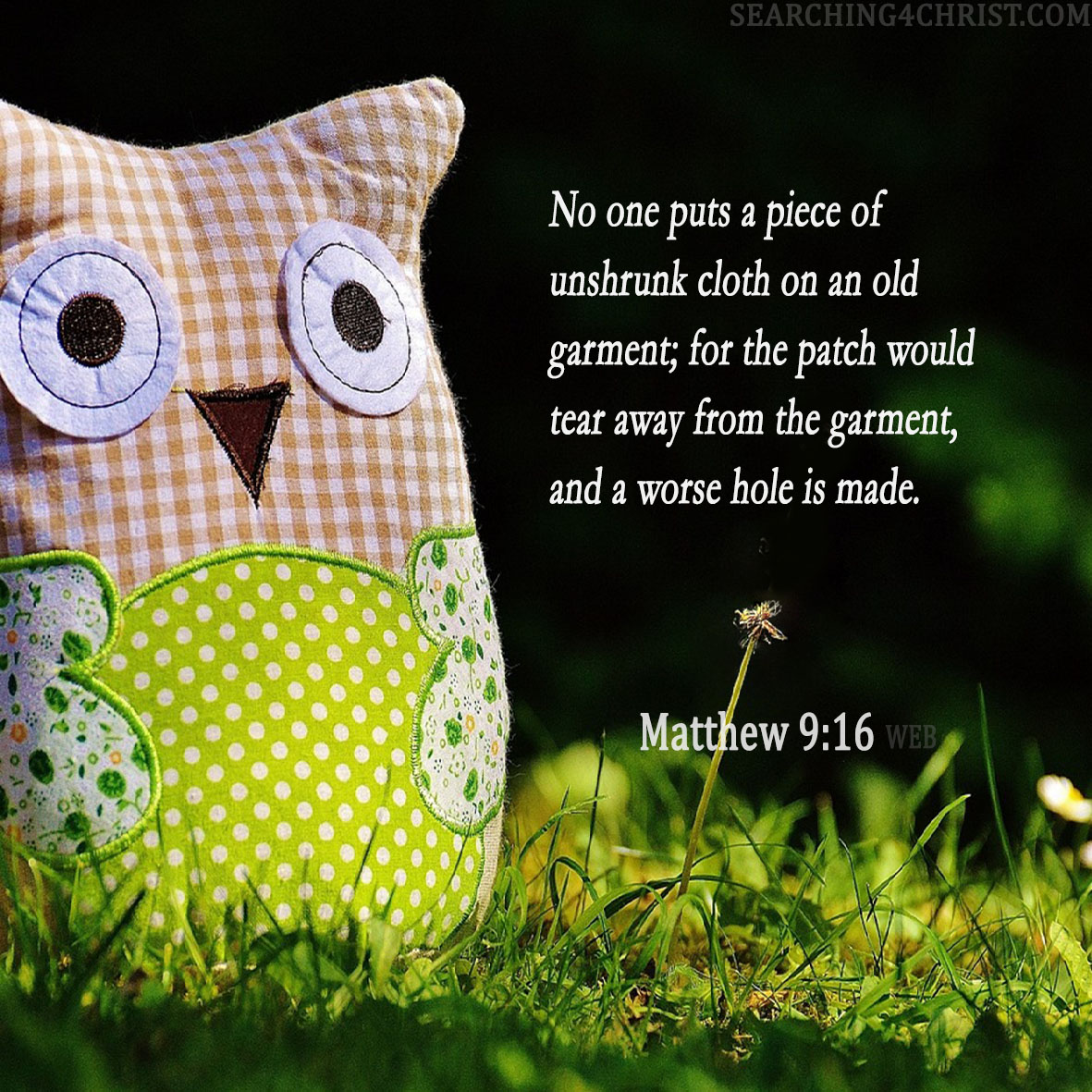 As Jesus teaches, He mentions patches on cloth and wineskins. Nowadays, we very rarely use either. Clothes are thrown out when they get old and liquids have more modern containers. So, we must lean in toward our Savior to hear His instruction. Some followers learn to take their questions to Christ. They figure He intended each word to assist them with their faith. Every bit of instruction is a chance to draw closer to our Teacher and learn straight from Him.