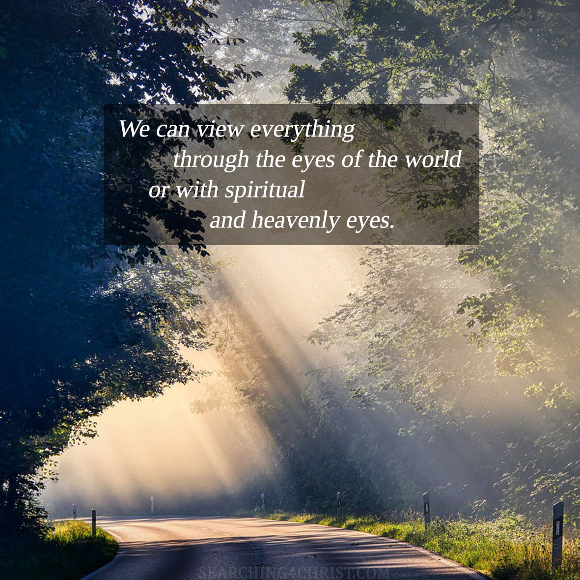 Dear Lord, draw us so close that we begin to see with eyes for spiritual things. Let us grow so tuned to You that You can share with us Your wonders. Shift our interests from earthly things to the things that are in Your heart. We are tired of seeing as the world sees and focusing on our ways. Awaken us to the joys and discoveries of a walk with the God we cannot see. Amen